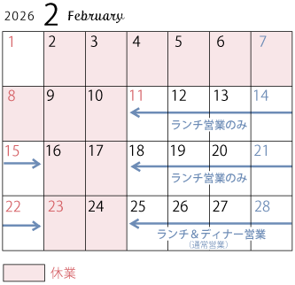 いつもCieloをご利用いただき誠にありがとうございます。 今回シェフの足のメンテナンス手術をすることとなり、2月の営業日・内容が変わっております。長期にわたりご迷惑・ご心配をおかけしますが、元気に帰ってくるまでディナー営業はお休みとなります。ランチ営業は元気一杯営業致しますので、よろしくお願い致します。